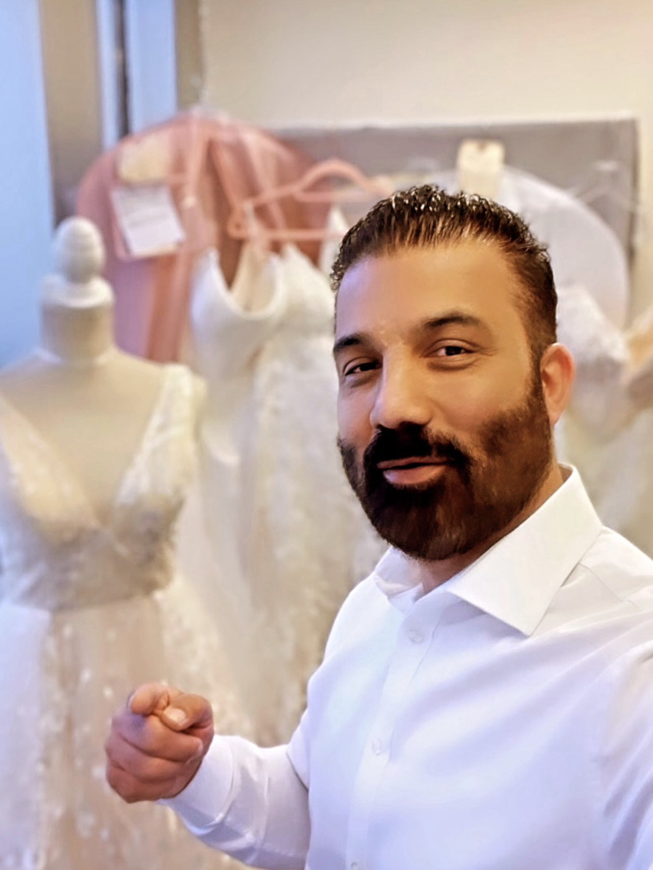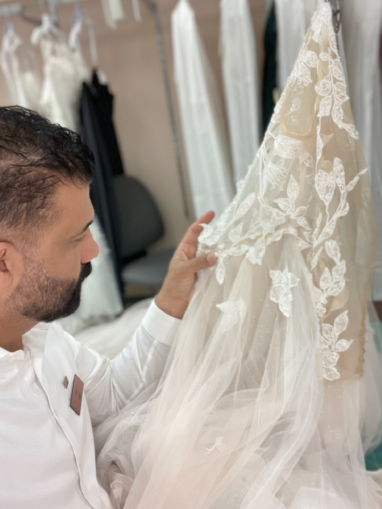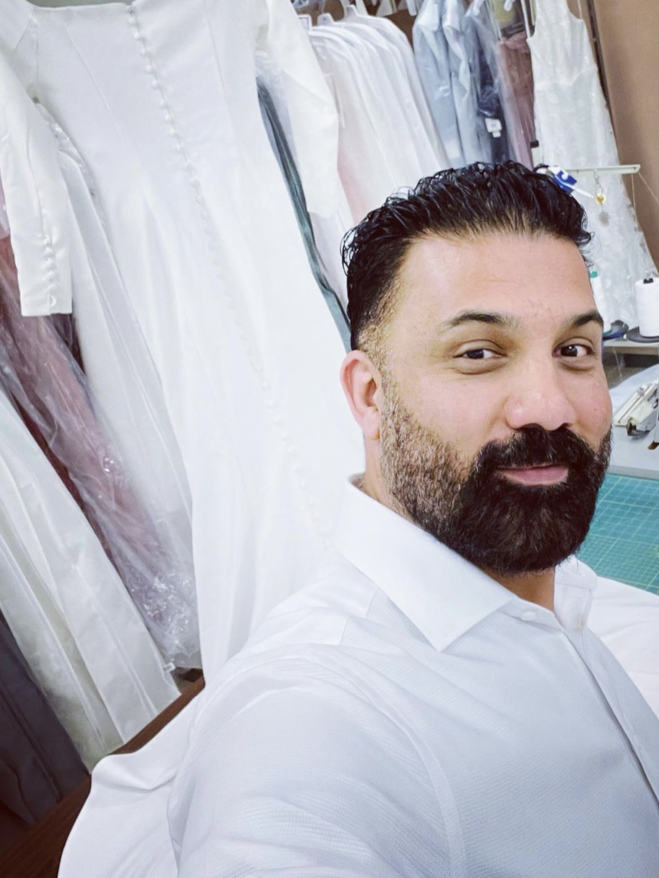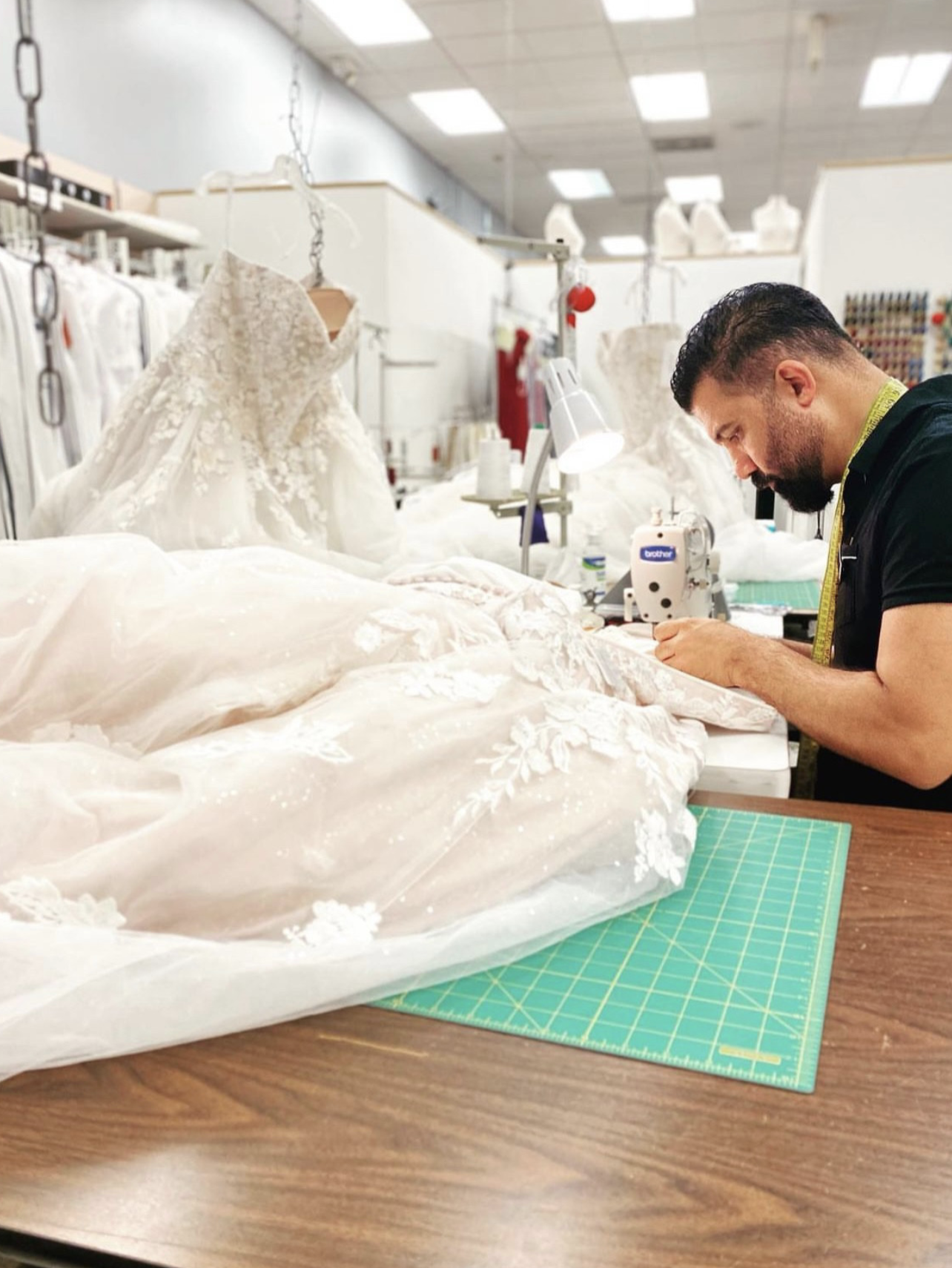 Our new customer is choosing fabrics to order 4 pairs of pants for her work.